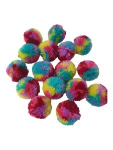 Venta de pompones para decoración, manualidades y bisutería. Los pompones son utilizados en múltiples trajes de carnaval o para decoraciones textiles, entre otras manualidades