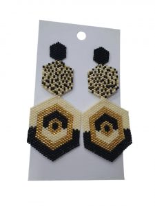 Aretes artesanales tejidos a mano con miyuki delica 11/0, producto creado a mano por artesanos latinoamericanos en diseños coloridos y de moda, aretes de 3 piezas tejidos en Miyuki, envíos a todo Colombia, Bidecol fabrica y comercializa accesorios artesanales.