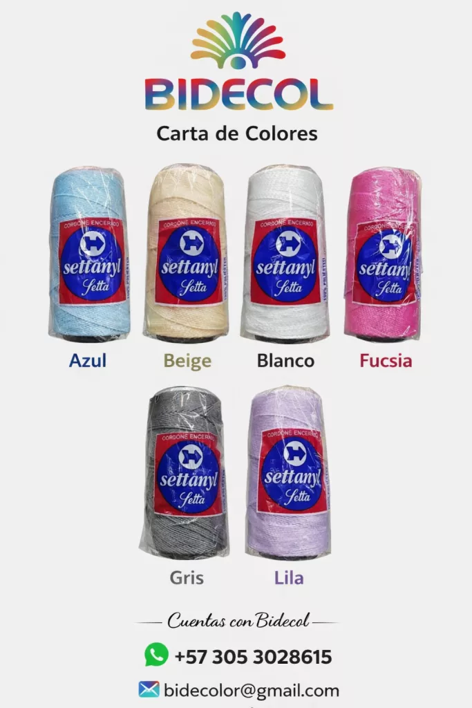 En BIDECOL encuentras hilo Settanyl original, con stock permanente, colores reales y envío a todo Colombia.