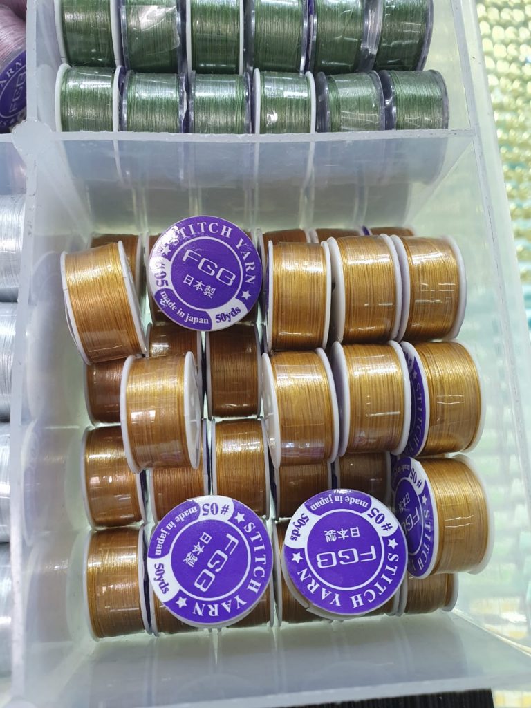 El hilo FGB para miyuki y mostacilla es un hilo especial para el tejido de cuentas o piedras de tamaño diminuto como la miyuki delica 11/0 y la mostacilla checa #10, este es un hilo fabricado con nylon de poliamida premium y que tiene procesos de lubricado, lo que lo hace ideal para el tejido de miyuki evitando el entorche o enredo del hilo. La presentación mas conocida de este hilo es el de pequeño carrete de 45 metros o 50 yardas
