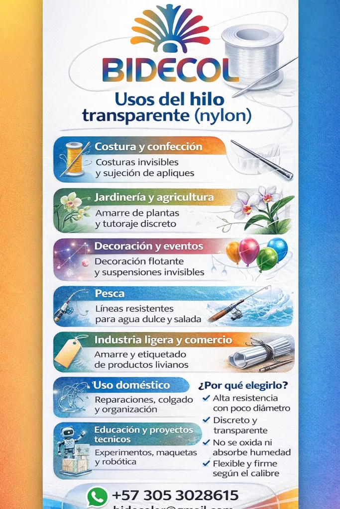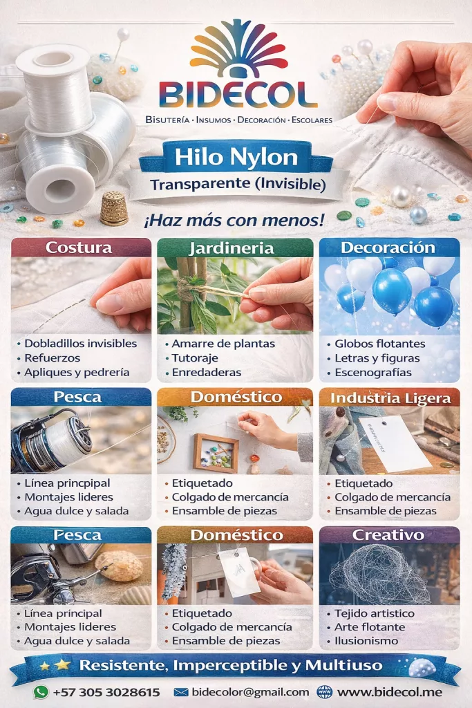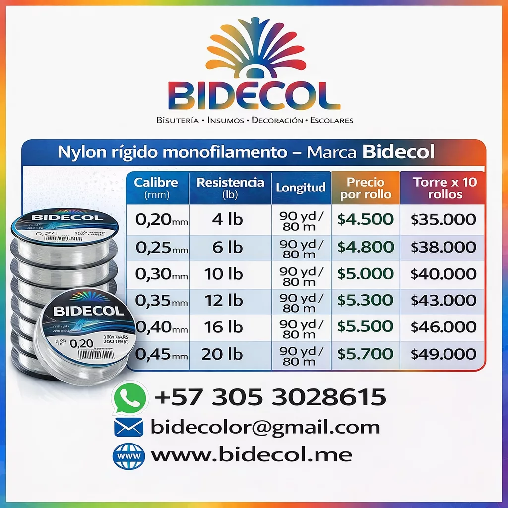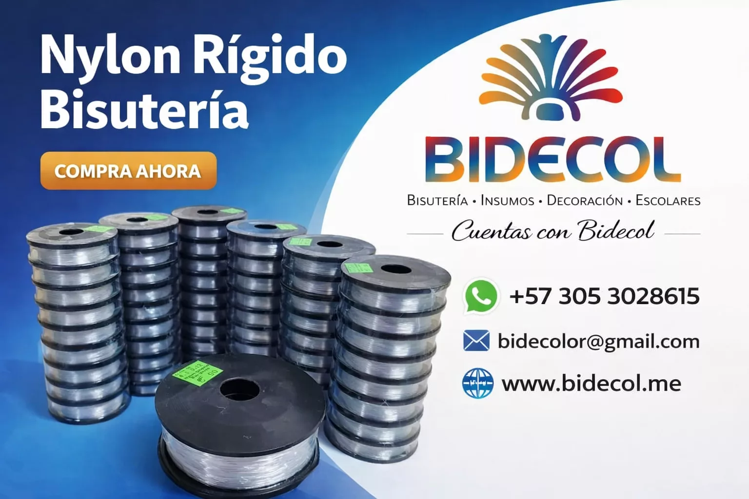 El nylon rígido para bisutería de Bidecol Colombia es un insumo esencial para la elaboración de collares, pulseras, tobilleras y manualidades que requieren resistencia, durabilidad y un acabado profesional, ideal para trabajar con mostacilla, cristales, perlas y cuentas acrílicas. Este hilo de nylon rígido se caracteriza por su alta transparencia, firmeza y memoria de forma, lo que permite que las piezas conserven su estructura sin perder estética, facilitando el ensartado y el armado de diseños precisos. En Bidecol ofrecemos nylon rígido para bisutería de excelente calidad, apto tanto para emprendedores como para artesanos y talleres, con disponibilidad inmediata y envíos a Medellín y toda Colombia, convirtiéndose en la mejor opción para quienes buscan insumos confiables para bisutería, joyería artesanal y proyectos creativos.