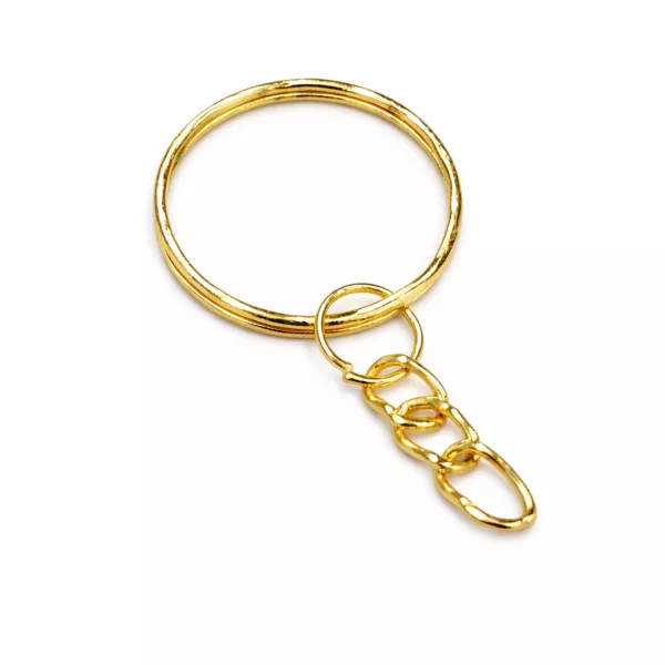 Venta de argolla dorada con pequeña cadena para elaboración de llaveros, argolla de llavero dorada económica, venta al por mayor y de tal, envíos a todo Colombia