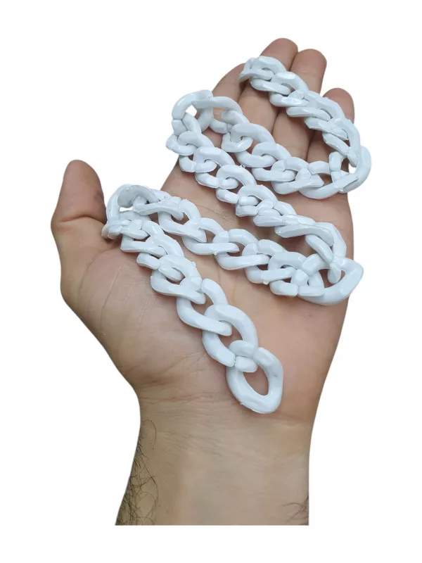 Venta de cadenas acrílicas para bisuteria y manualidades, cadenas para elaboración de accesorios, llaveros y manualidades en general. Los eslabones de la cadena tienen muesca abierta por la cual se pueden adherir o separar de forma fácil. Cadena plástica.
