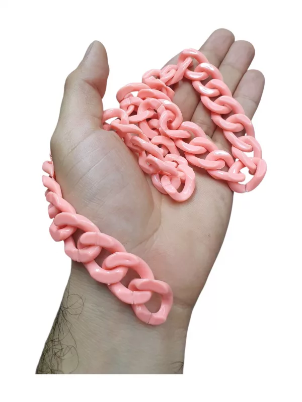 Venta de cadenas acrílicas para bisuteria y manualidades, cadenas para elaboración de accesorios, llaveros y manualidades en general. Los eslabones de la cadena tienen muesca abierta por la cual se pueden adherir o separar de forma fácil. Cadena plástica.