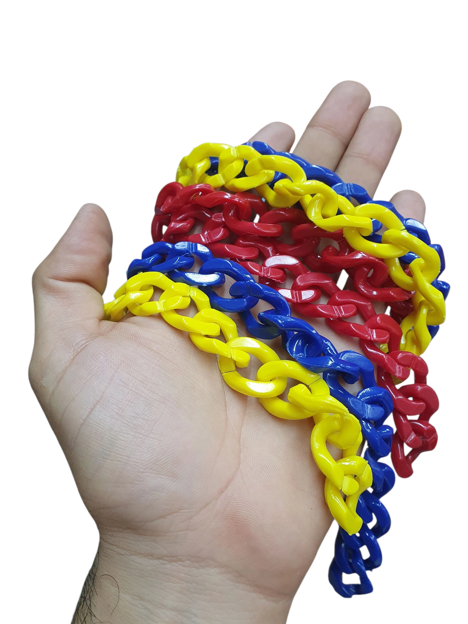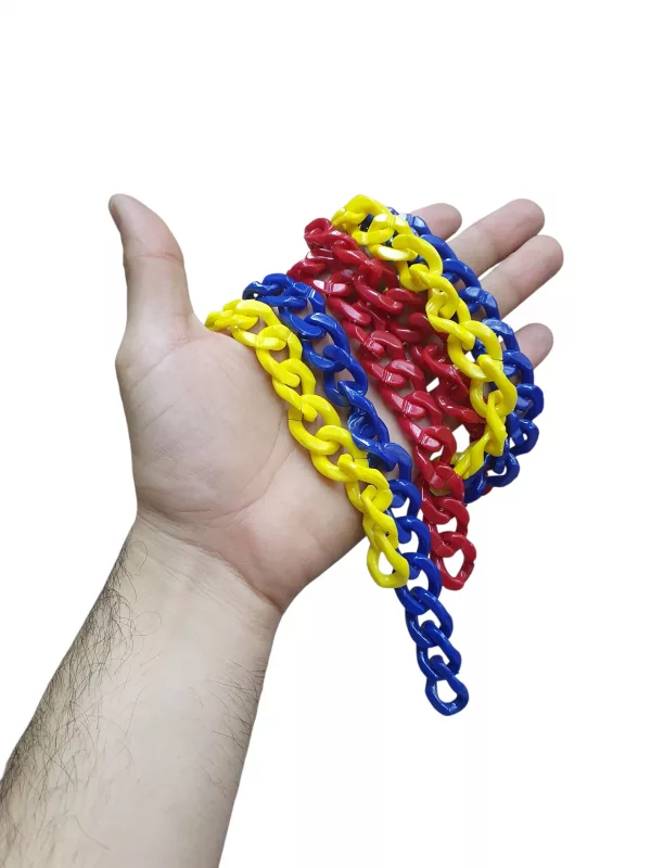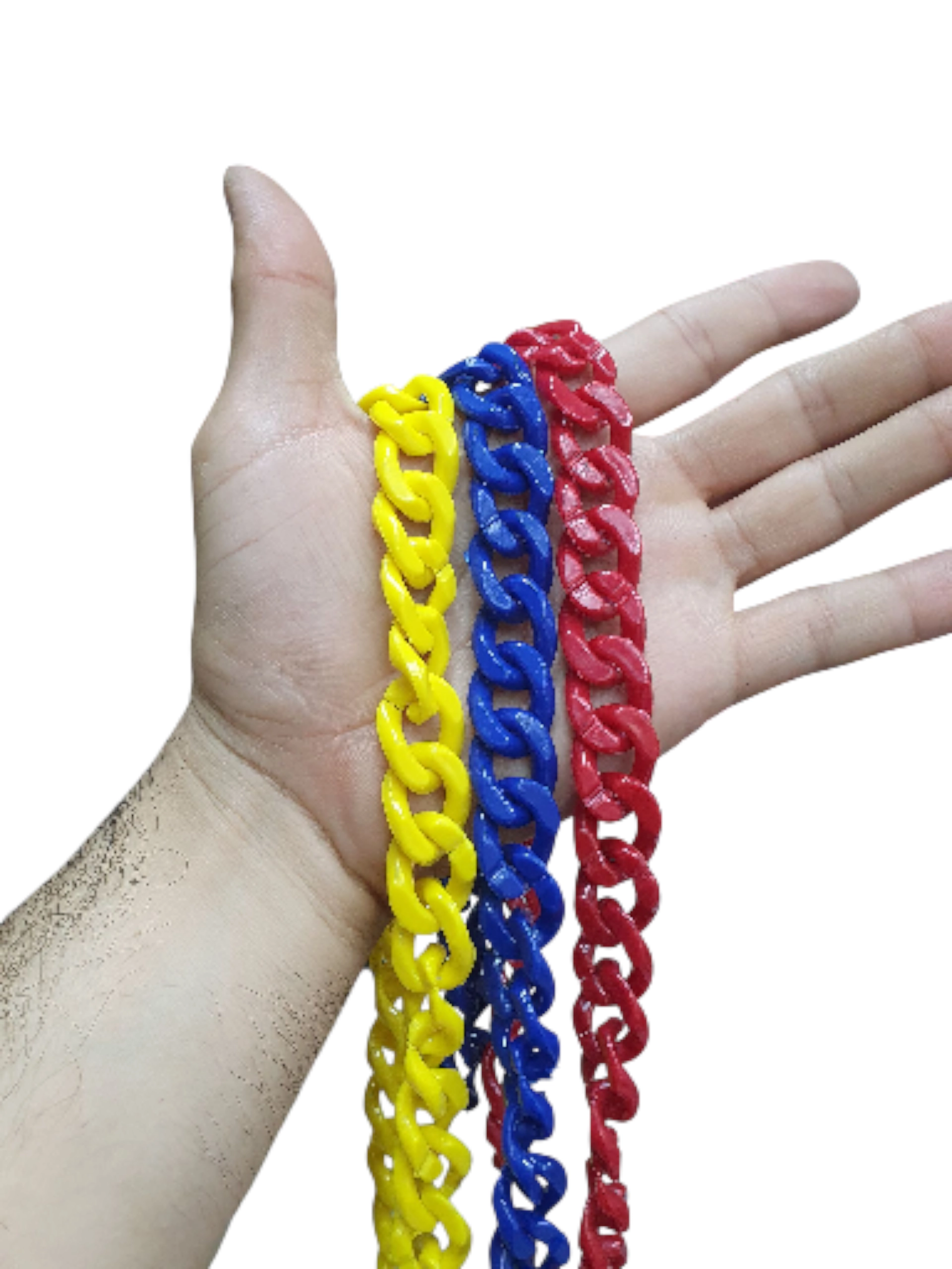 3 cadenas acrílicas, 1 amarilla + 1 azul + 1 roja