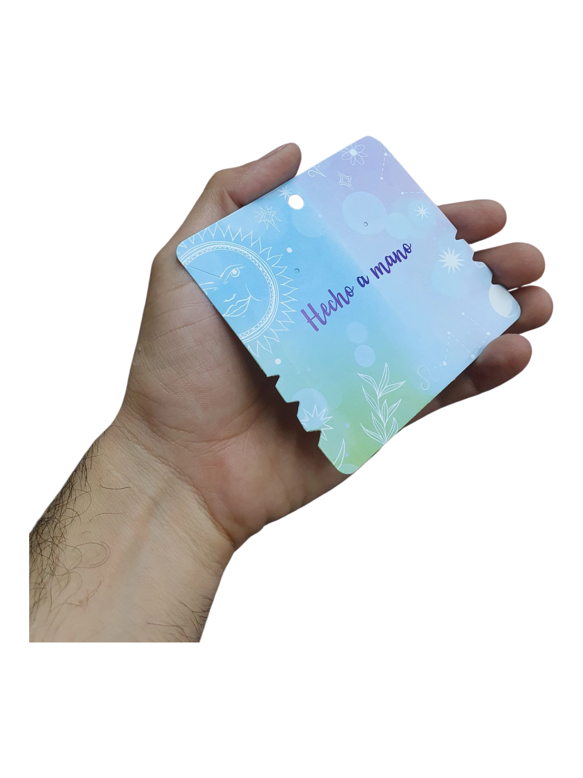 - Valores agregados: Leyenda hecho a mano y cuidados de accesorios en la parte posterior