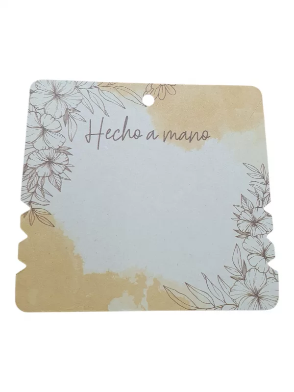 - Valores agregados: Leyenda hecho a mano y cuidados de accesorios en la parte posterior