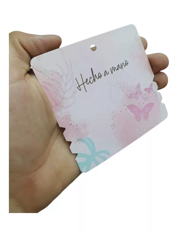 - Valores agregados: Leyenda hecho a mano y cuidados de accesorios en la parte posterior