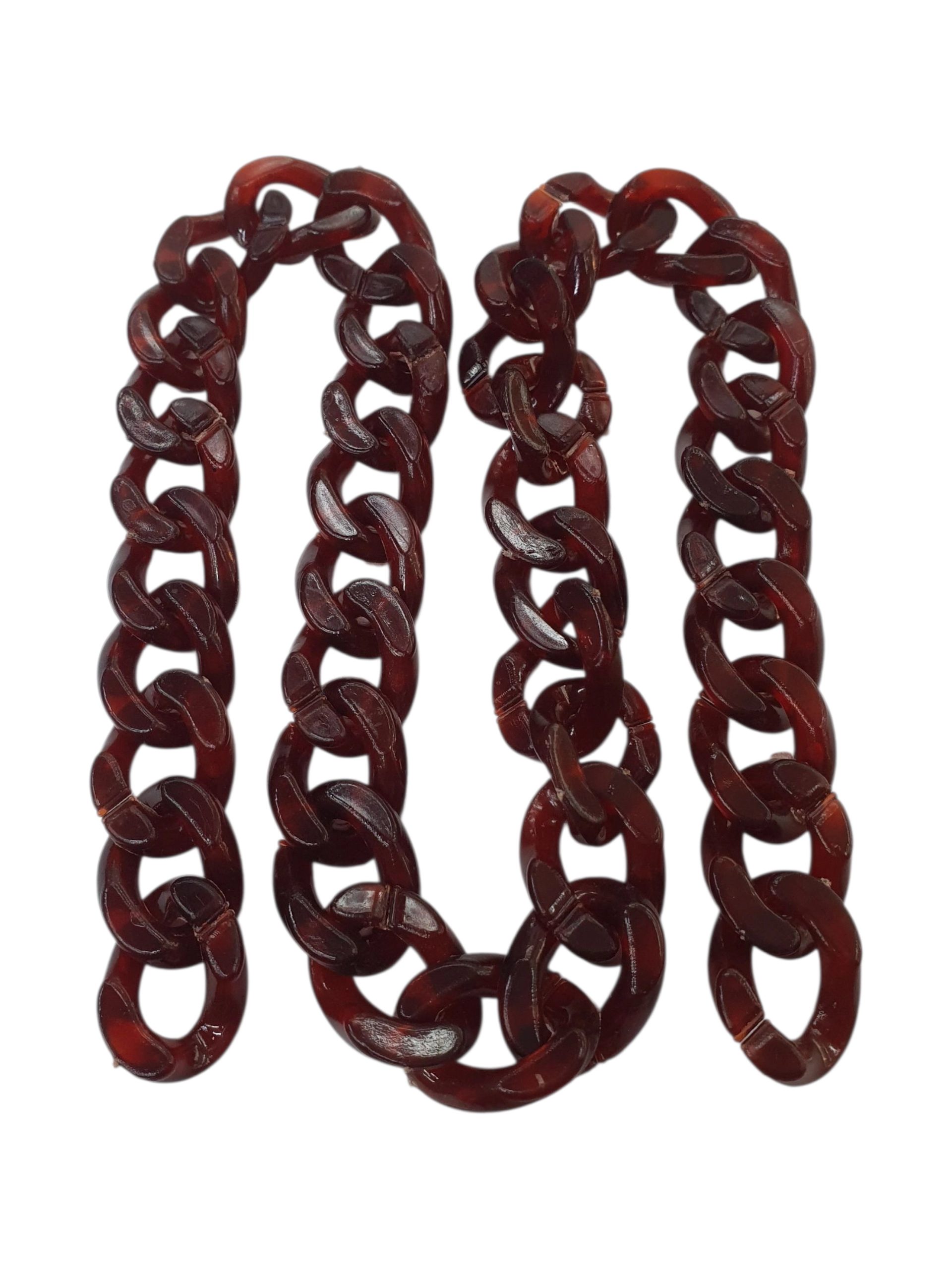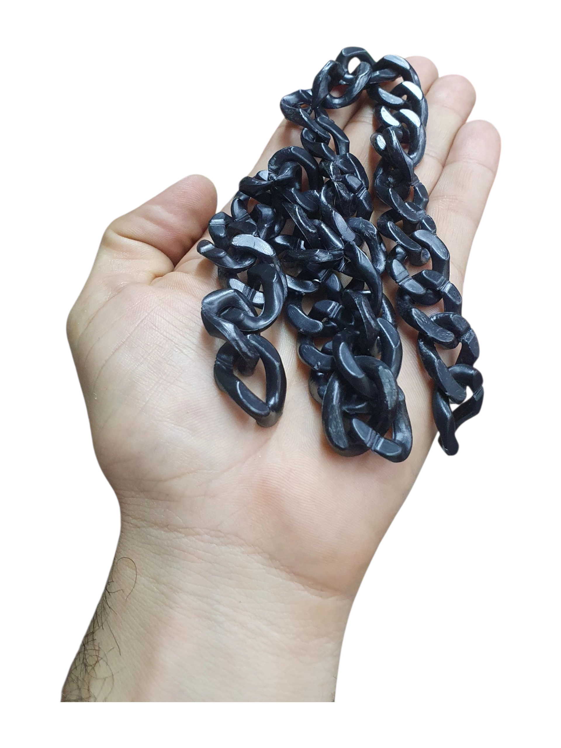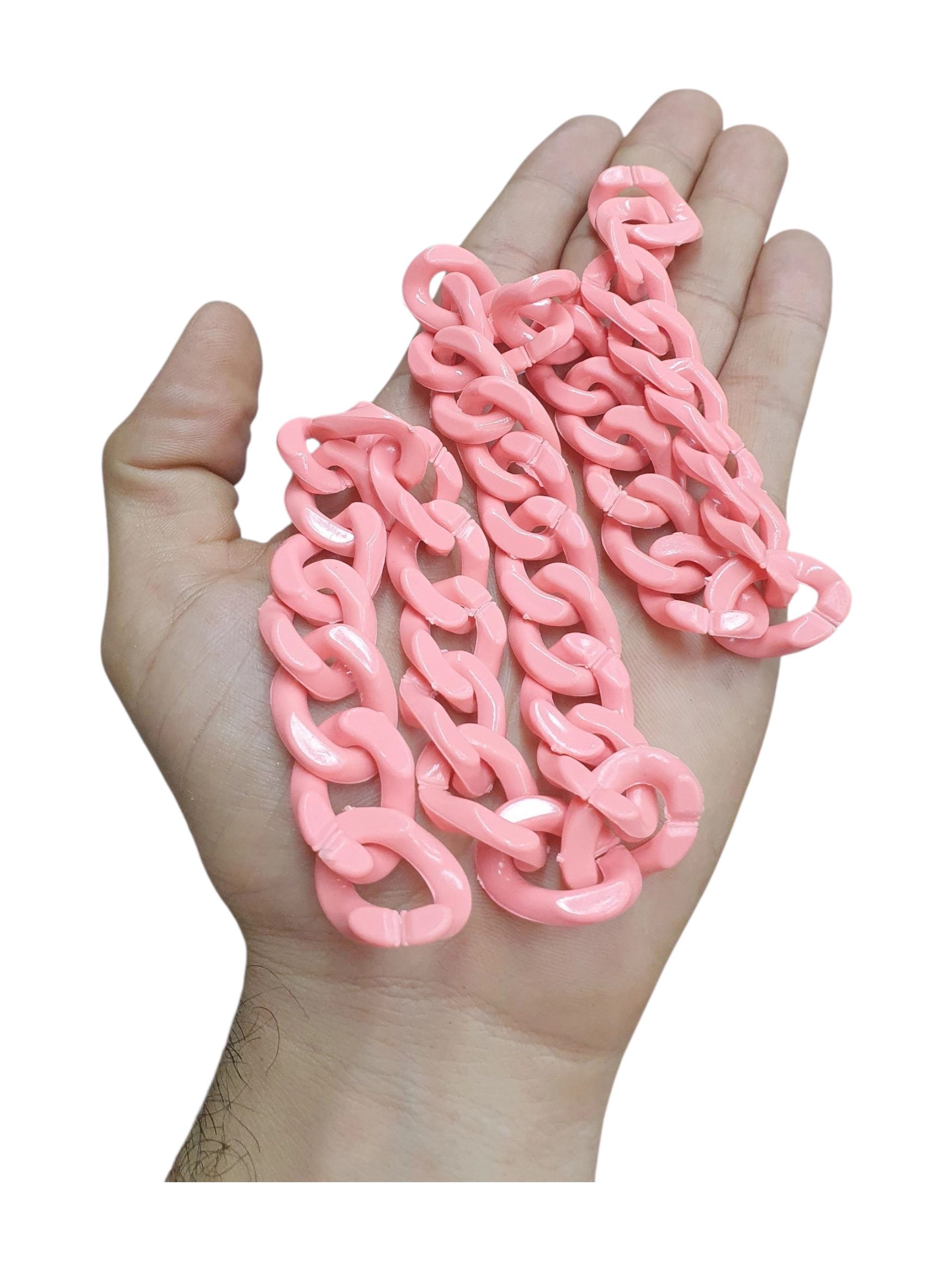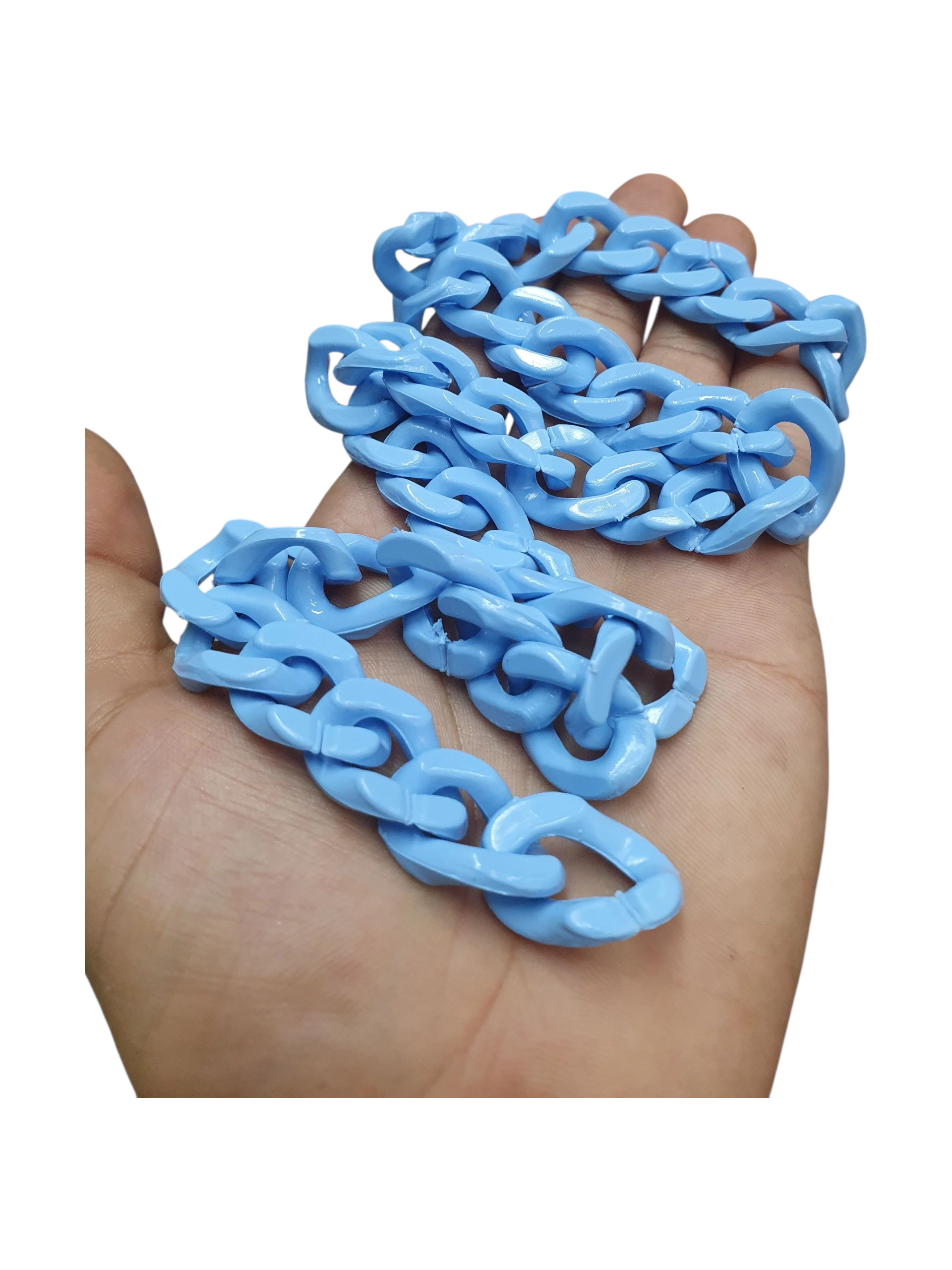 Venta de cadenas acrílicas para bisuteria y manualidades, cadenas para elaboración de accesorios, llaveros y manualidades en general. Los eslabones de la cadena tienen muesca abierta por la cual se pueden adherir o separar de forma fácil. Cadena plástica.