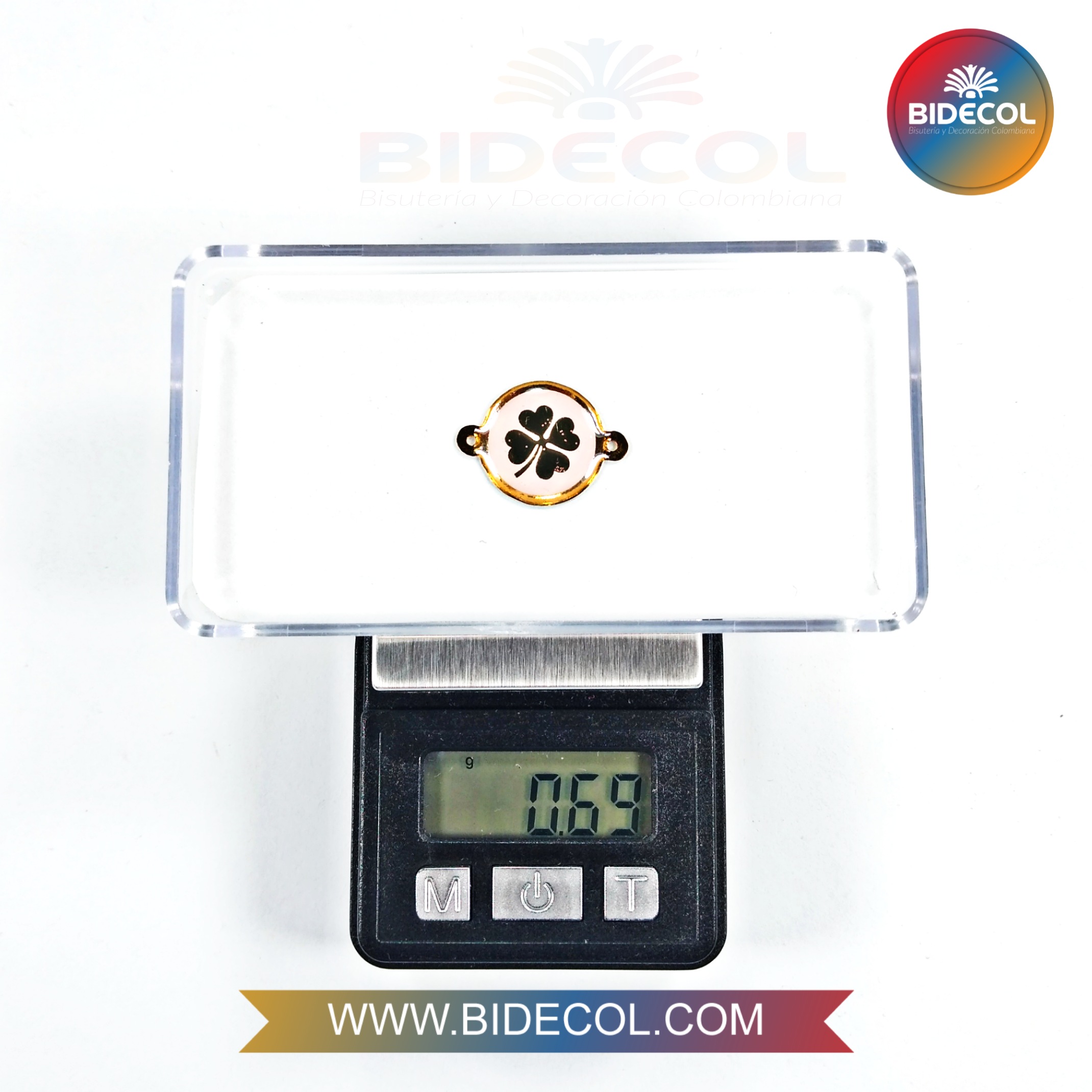 nombre: Dije Centro Trébol Rosado en Oro Golfi/Resina 2.0cm x 1und