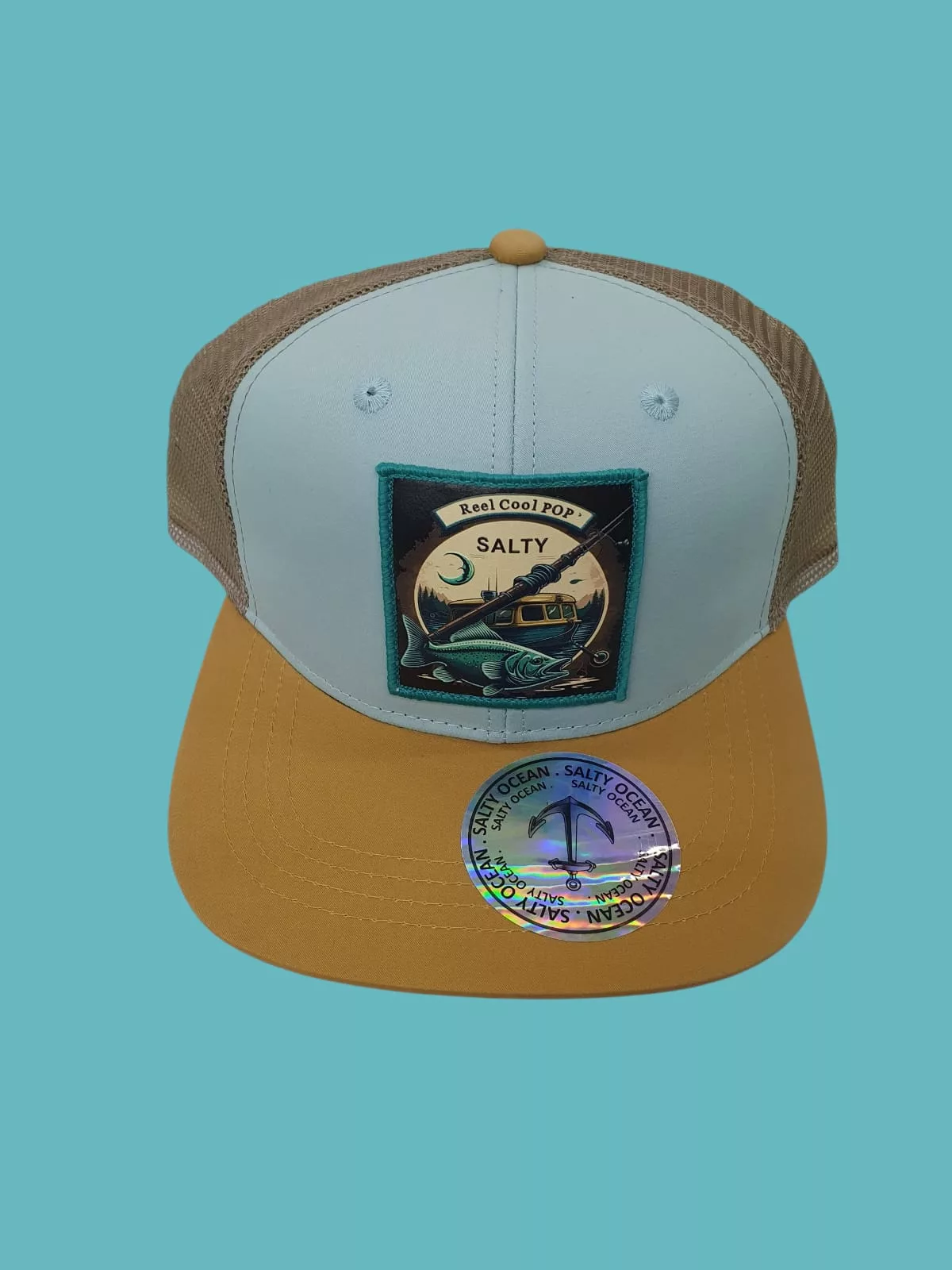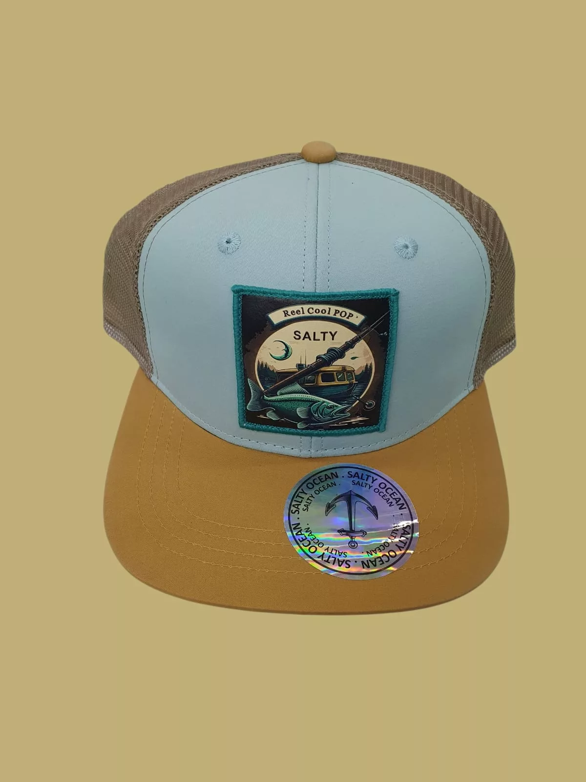 GORRAS SALTY OCEAN ORIGINALES, Gorra Salty Ocean Reel Cool, verde azul y camel