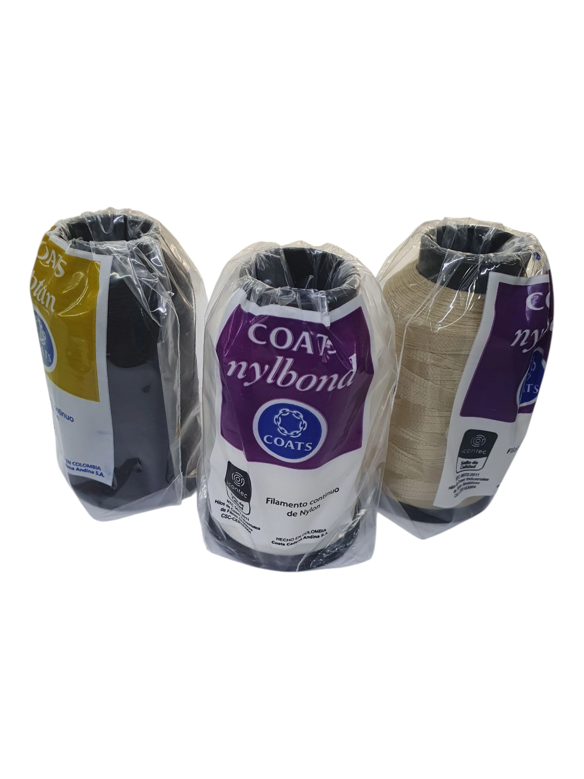 Hilo nylbond carrete por 40 gramos. Producto no disponible en tienda física, Venta de hilo de alta resistencia, hilo nylbond – coats, hilo para zapatería, marroquinería, talabartería, hilo de nylon poliamida premium, 3 rollos en colores: Negro, Blanco, Beige