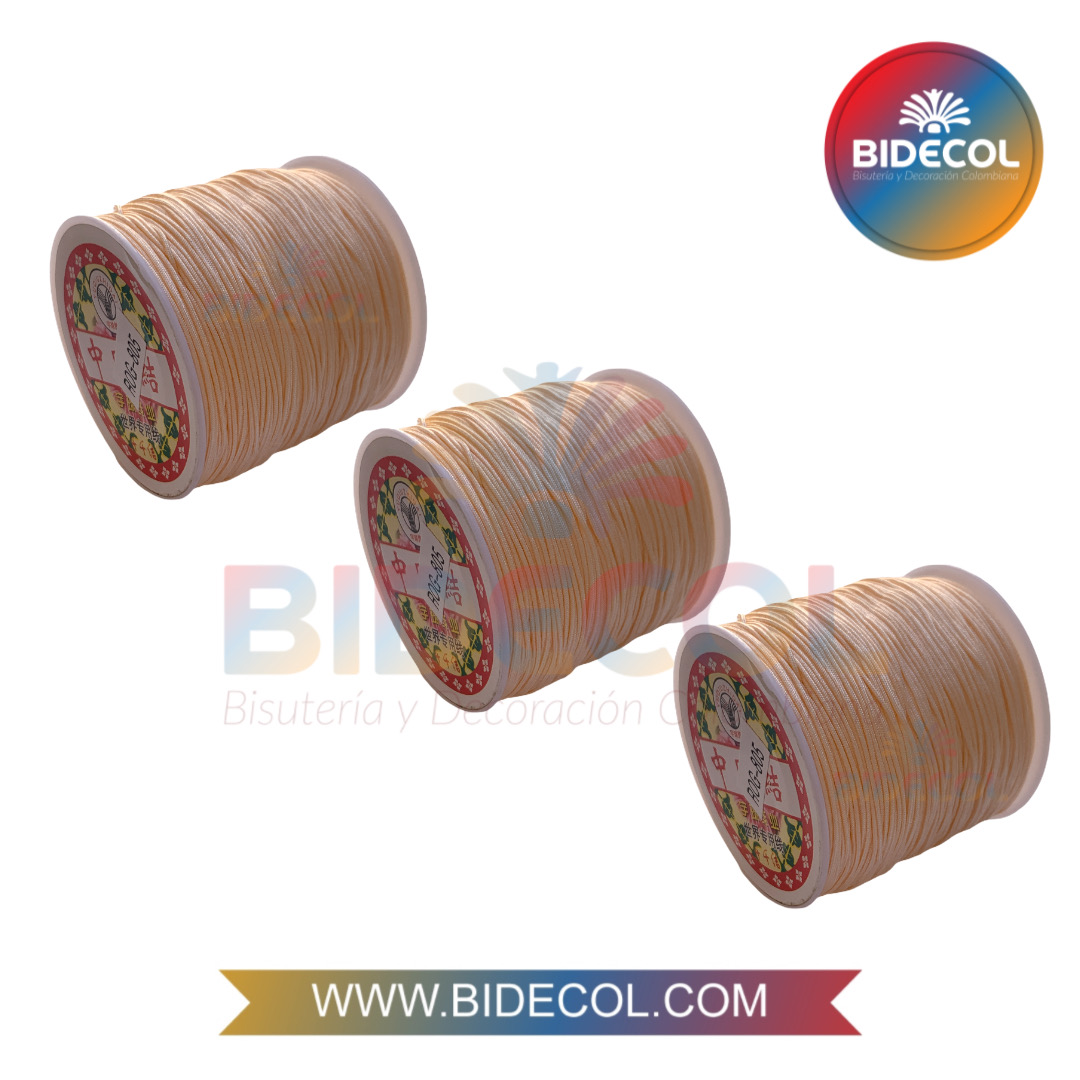 Hilos Chino 0.8mm x 100m Mandarina Pastel A31-10 x 3und, utilizado en la bisutería para tejer pulseras, collares y entre otro tipo de accesorios y/o manualidades.