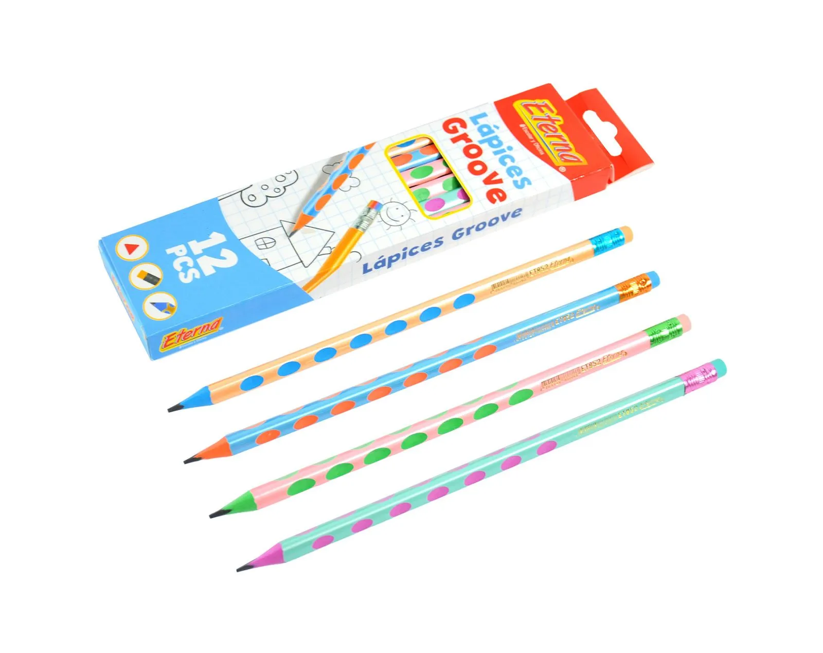 Lápiz diseño ergonómico, Ideal para marcar, revisar, subrayar y escribir, mina resistente para mayor duración, suavidad y confort al usarlo, hechos con madera y mina de alta calidad para un fácil y excelente afilado, set x 12. Lápices groove