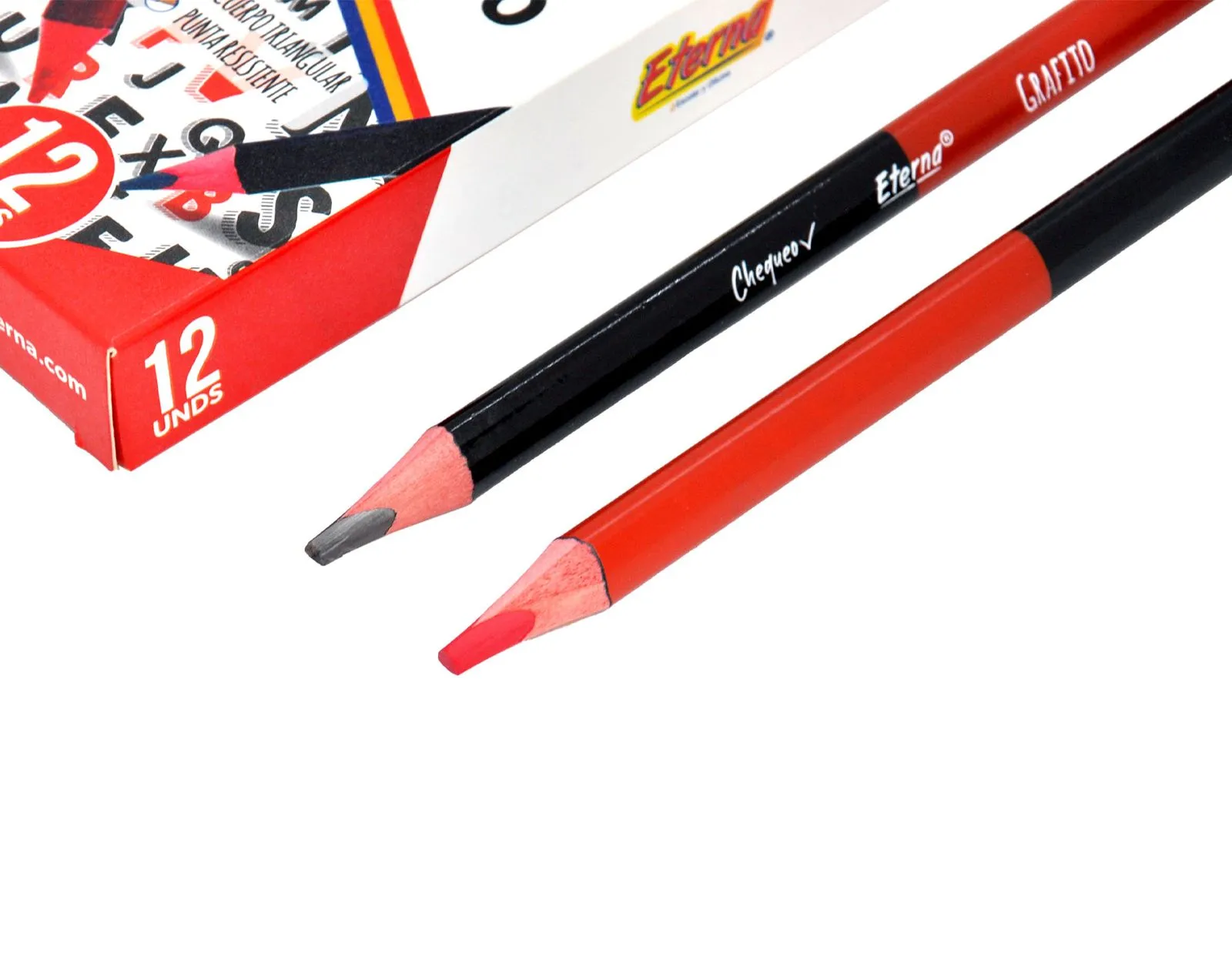Lápices Bicolor Negro y Rojo X12 Eterna, lápiz grande jumbo