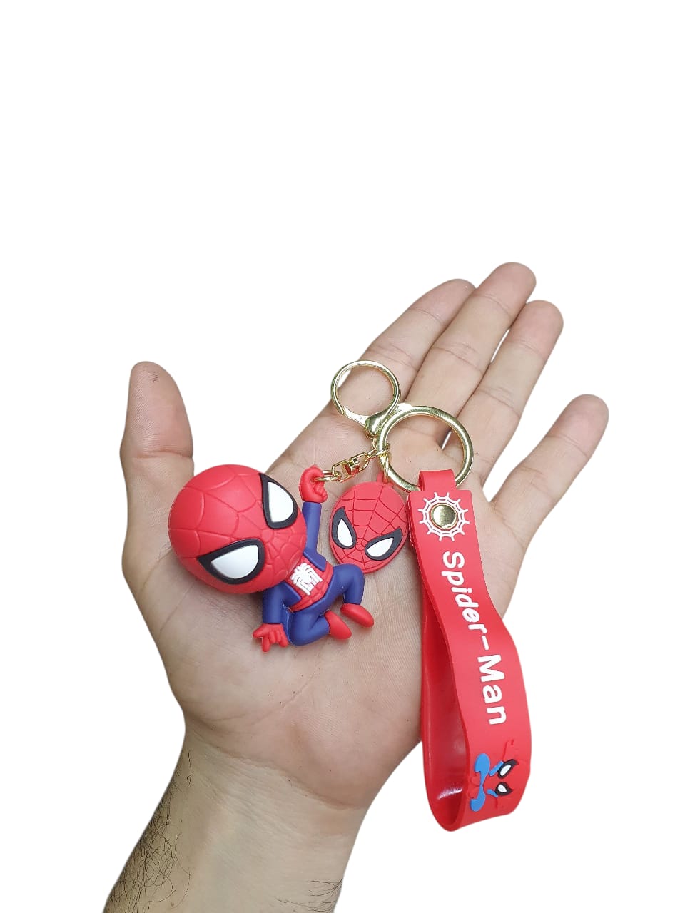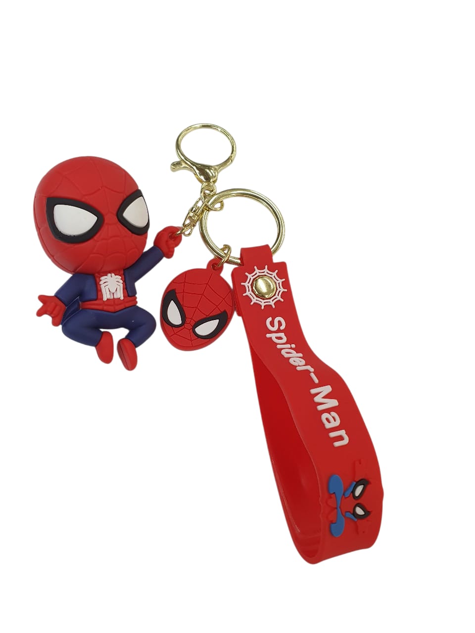 Llavero del hombre araña en caucho de silicona, figura infantil de spiderman, llavero en color dorado, llavero mosqueton fantasía.