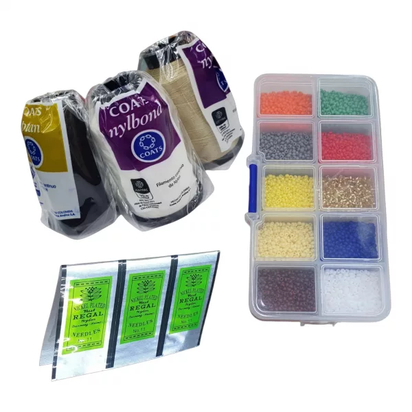 Venta de kits mostacilleros, kits con todo lo necesario para el tejido de mostacillas checas. Hilos, agujas, telares, paños y mucho mas para el tejido de la mostacilla checa