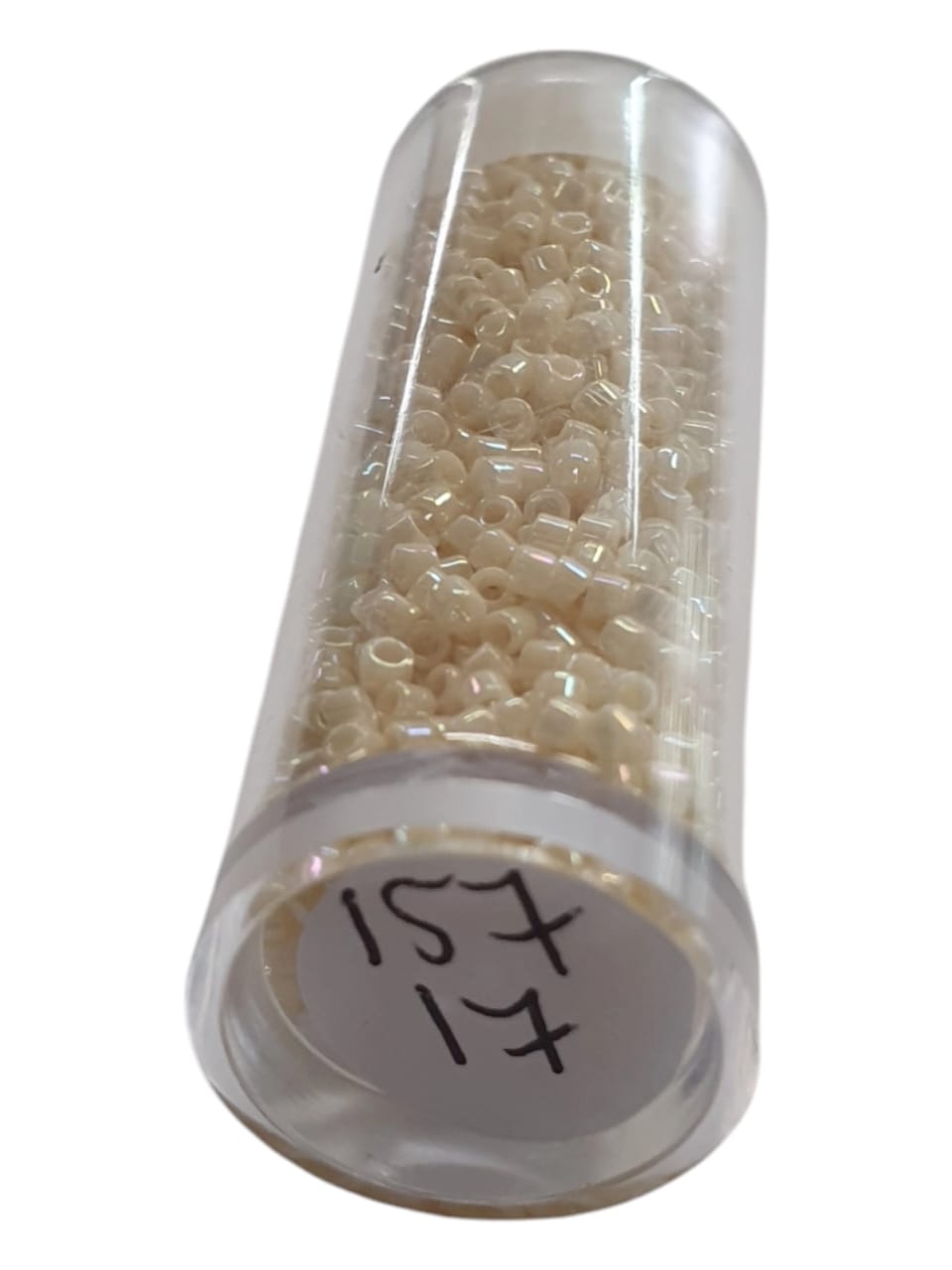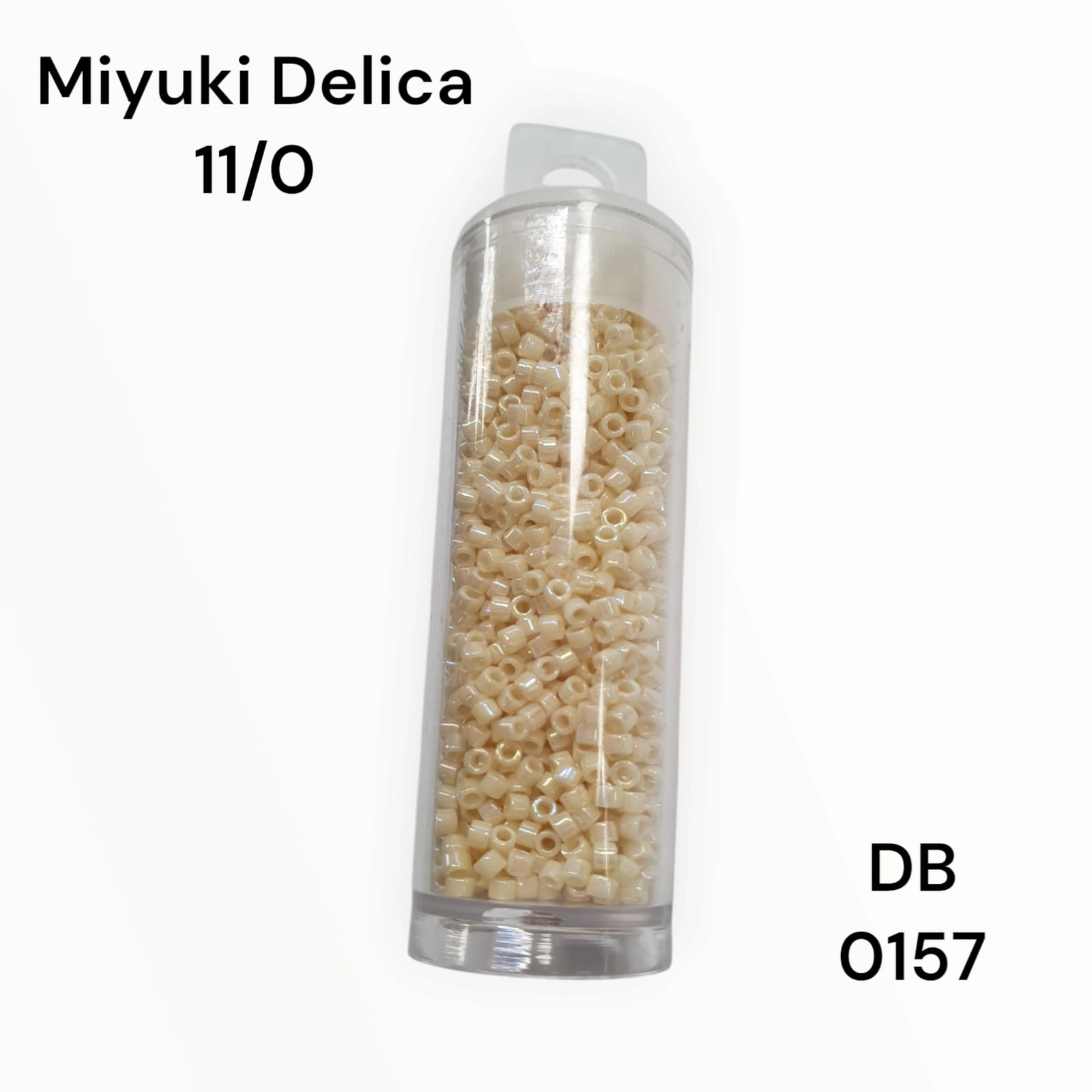 - Miyuki delica 11/0 codigo db 0157, miyuki beige, es el mismo miyuki db 1560 pero tiene una pelicula llamada boreal o que da brillos iridiscentes, no se pueden apreciar bien en las imagenes