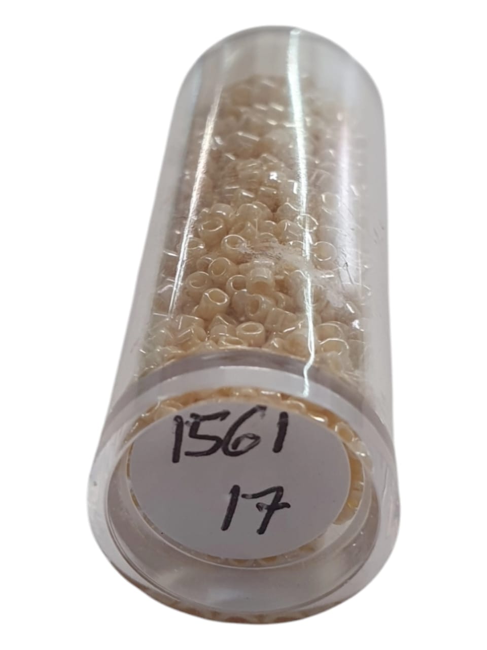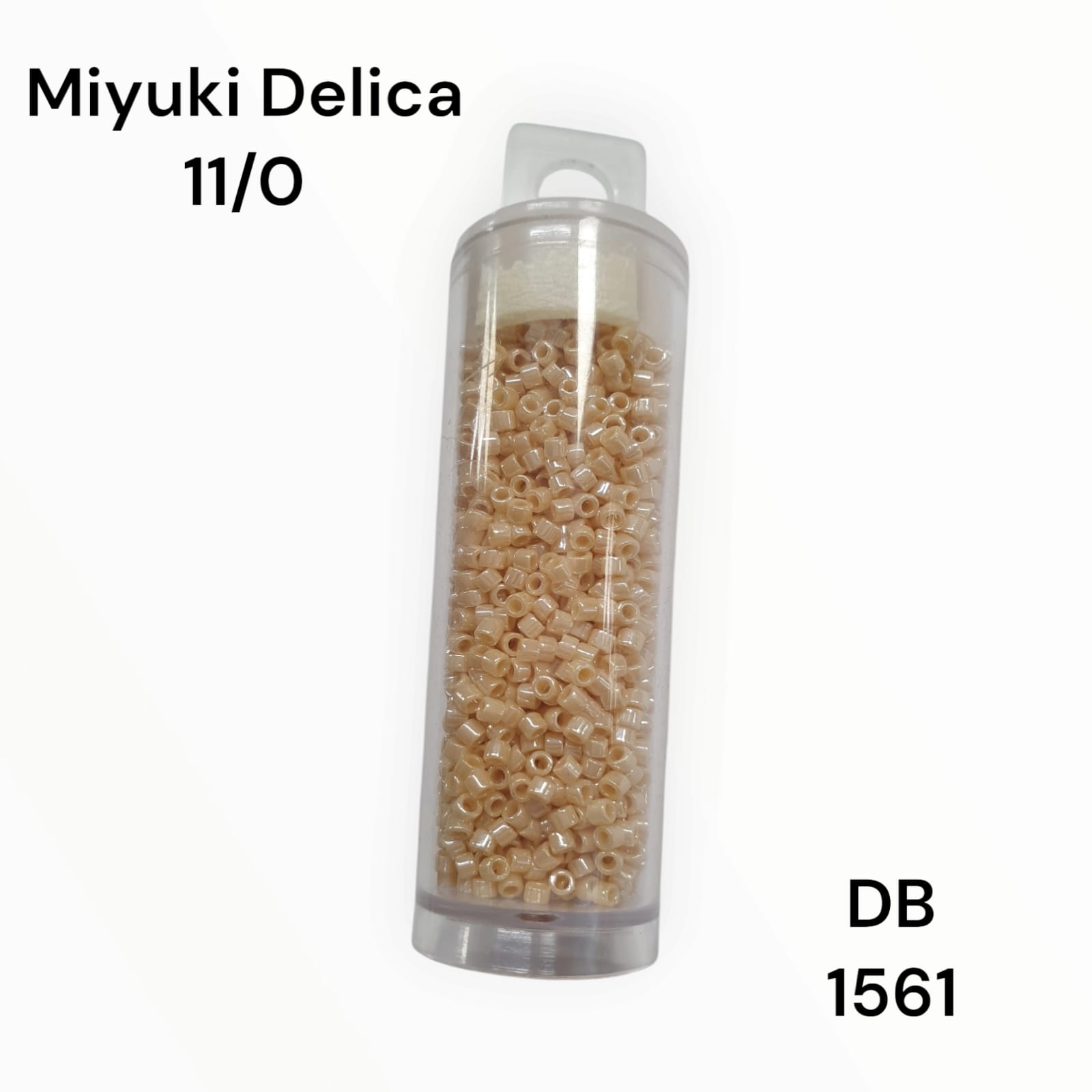 - Miyuki delica 11/0 codigo db 1561 es similar al miyuki db 1131, pero tiene pelicula brillante o nacarada, beige clasico con mas brillo, color nut brillante o color nuez brillante