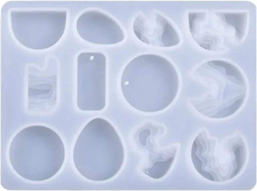 Producto: molde de silicona para fabricación de llaveros, bisuteria o apliques con resina epoxica, figuras basicas geométricas y figuras por capas x 12 piezas