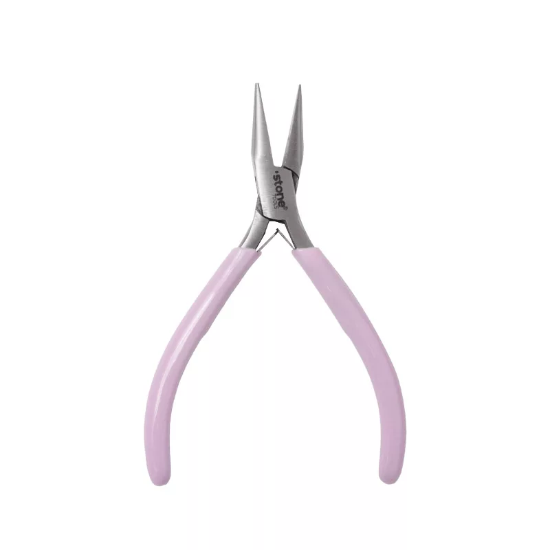 Una pinza de acero o alicate de punta plana es una herramienta manual hecha de acero resistente, con puntas rectas y planas. Se utiliza para sujetar, doblar, aplastar o ajustar piezas pequeñas como alambres, argollas, cadenas y accesorios en trabajos de bisutería y manualidades.