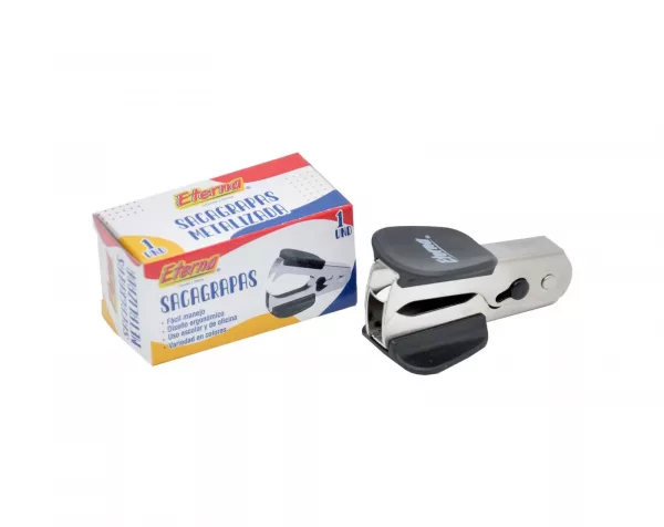 Es una herramienta pequeña diseñada para retirar grapas metálicas de hojas de papel sin dañarlas.